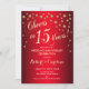 Design elegante com vermelho profundo, preto e dourado falso. Saúde por 15 Anos! Perfeito para uma festa elegante.
