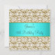 O convite de aniversário de 15 da Elegante Azul e Damasco de Ouro. Personalize com sua escolha de estilo de fonte e cor de fonte.