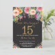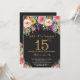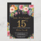 Convite de Aniversário para 15 de Surpresa Floral para Mulheres. Flor Floral de Água. Brilho preto e Dourado. Rosa, Amarelo, Laranja, Flor Roxo.Aniversário de crianças. Para Lady Teen Teenage.