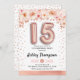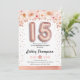 convite de aniversário 15. Design elegante em ouro brilhante de rosa com sotaque floral. Convide cartão com rosa dourado número 15 balões, fonte de script com confetti. Coral cor-de-rosa, branco. Perfeito para uma festa de 15 dias e na moda. Envie-me uma mensagem se precisar de idade personalizada.
