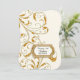 NOTA: esta é uma imagem impressa em formato plano, não há joias, camadas sobre-elevadas ou elementos metálicos dourados. COR PALETTE: branco cremoso com aspecto brilhante metálico dourado falso COLLECTION: Convocação de Festa de aniversário de 15 correspondente. Inspirado em Velha Hollywood e na sua era do glam, este conjunto de convites para o casamento é perfeito para celebrações elegantes, sofisticadas e modernas. Um padrão clássico, bonito e girando estilo damask de folha foi desenhado graficamente para parecer um design de rendas bordadas em ouro com borda prateada com uma fivela de ouro que tem uma borda de diamante sobre a falso brilho. Um layout de tipografia contemporâneo para o seu texto de convite e informações atualiza este design de retrato vintage. Um design maravilhoso, único e bonito para a noiva mais discriminadora.