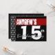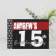 Este design moderno vermelho, do branco e do preto é uma maneira do divertimento de convidar povos a uma 15a celebração do aniversário. Todo o texto é totalmente customizável. Você pode experimentar com os tipos de papel diferentes clicando do "na aba das opções convite" no canto de righthand superior. Eu recomendo o papel metálico hued do gelo que dá a seu convite do aniversário um shimmer e um brilho festivos. Bonito!