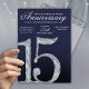 This elegant anniversary card features a graceful diamond-style number fifteen set against a rich navy blue background with luminous silver accents. The faceted crystal texture brings refined sparkle, while soft gradients and subtle light effects add depth and balance. The cool navy and silver palette creates a timeless, formal mood, making this design a beautiful way to celebrate fifteen years together with sophistication, warmth, and lasting elegance.