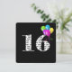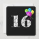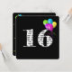 Texto preto e branco em negrito sobre fundo preto com balões coloridos para o 16º convite para festas de aniversário.