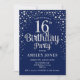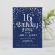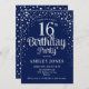 16º Convite de aniversário. Design elegante em azul marinho escuro e prata brilhante fraca. Possui fonte de script na moda e confetti. Envie-me uma mensagem se precisar de idade personalizada.