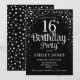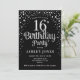 16º Convite de aniversário. Design elegante em prata brilhante e preto. Possui fonte de script na moda e confetti. Envie-me uma mensagem se precisar de idade personalizada.