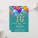 16.º Aniversário Teal e Dourados Balões Coloridos e Confetti Convite. Para mais personalização, clique no botão "Personalizar" e use nossa ferramenta de design para modificar este modelo.