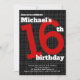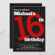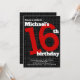 Convite 16.º Aniversário de Negra com Destaque Vermelho,