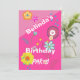 Um convite de aniversário floral. Uma gama colorida de flores - o poder das flores - em azul vibrante amarelo e pinks sobre fundo preto. Mude a idade para qualquer idade e não apenas para 16 anos. Altere facilmente todas as suas informações para o seu próprio convite de aniversário pessoal personalizado.