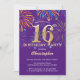 Convite 16.º aniversário Fogos de artifício púrpura e Dour