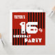 16.º ou Em Qualquer Estrias Negras Vermelhas Modernas de Aniversário T16A. É hora de comemorar! Crie seu próprio convite de aniversário personalizado. É fácil! Basta adicionar os detalhes da sua festa. Esta design contemporânea com seu padrão riscado e seu texto grande e ousado é uma maneira divertida de convidar as pessoas para a celebração do 16º aniversário de uma adolescente. O texto a convite é totalmente personalizável - você pode experimentar diferentes tipos de papel clicando na guia "Opções de convite" no canto superior direito. Eu recomendo esta design num papel metálico de gelo abarrotado que dá a você um chamariz festivo e brilho. Este convite é adequado para qualquer ano de aniversário 10º 13 de 12 de 11 de 16º 17º 18º 19º ou qualquer outro ano de que você precise. Fatos Divertidos de Aniversário: Os convites de Aniversário estão por perto há muito tempo... desde o século 1rua AD! O aniversário mais comum dos EUA é 5 de outubro. O aniversário menos comum dos EUA é 22 de maio. O maior bolo de aniversário já feito pesava 128.238 libras! (foi criado para celebrar o centenário de Fort Payne, Alabama, em 1989.)