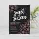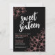 16º Convite de aniversário Dourado Floral Doce Dezesseis. Um divertido, mas elegante 16º convite de aniversário com ouro rosa-rosado e contornos de flores brancas. Por favor, note que o 'ouro rosa' é apenas uma cor, não há folha de alumínio ou cinza nele. Um padrão de flor brincalhão enquadra uma tipografia de script "doce dezesseis" misturada com uma fonte serif mais clássica. Celebrar 16 anos de vida com esta na moda bela design botânica. A parte divertida é que você pode mudar TODAS as cores! Você não só pode mudar as cores e a fonte de fundo, como também pode mudar as linhas das flores. Disponível como um convite impresso ou como um convite digital para download que você pode enviar por e-mail ou que foi impresso localmente!