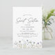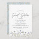 Bonito e elegante doce 16 convites com ilustrações aquáticas de flores silvestres. Azul floral sobre um fundo branco. O reverso é azul-gelo, com um padrão de coordenação.