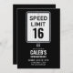 Modern, bold birthday party theme featuring a black-and-white speed-limit road sign design. Perfect for a 16th birthday or any milestone age. Fully customizable with your event details and age. A stylish, contemporary choice for teen celebrations with a cool, grown-up feel. Please check the matching collection for COORDINATING ITEMS. Original artworks by PUPSIKU STUDIO. 100% unique product.