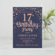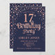 17º Convite de aniversário. Design elegante em azul marinho e ouro rosa brilhante. Possui fonte de script na moda e confetti. Envie-me uma mensagem se precisar de idade personalizada.