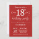 18º Convite de Aniversário com Fundo Vermelho. Aniversário Adulto. Homens ou Mulheres no Dia Convidam. 13 15 16º 18º 20 21rua 30 40º 50º 60º 80 de 70 100º, qualquer idade. Para mais personalização, clique no botão "Personalizar" e use nossa ferramenta de design para modificar este modelo.