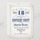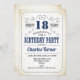 18º Convite de aniversário. Design retrô elegante em branco cremoso, azul marinho e preto. Pode ser personalizado em qualquer idade!