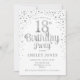 18º Convite de aniversário. Design elegante em branco e prata brilhante fraca. Possui fonte de script na moda e confetti. Envie-me uma mensagem se precisar de idade personalizada.