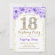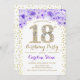 Convite 18ª Festa de aniversário - Dourado roxo branco