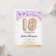 18º convite de aniversário. Design elegante em ouro brilhante com sotaque floral. Convide cartão com balões dourados número 18, fonte de script com confetti. Roxo, lavanda e branco. Perfeito para uma comemoração de na moda 18 dias. Envie-me uma mensagem se precisar de idade personalizada.