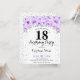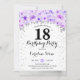 18º convite de aniversário. Design elegante em prata brilhante com sotaque floral. Convide cartão com fonte de script e confetti. Púrpura e branca pastel. Perfeito para uma comemoração de na moda 30 dias. Envie-me uma mensagem se precisar de idade personalizada.