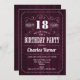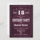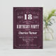 18º Convite de aniversário. Design elegante com padrão de madeira de marrom burgundy. Pode ser personalizado em qualquer idade!