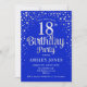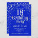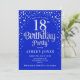 18º Convite de aniversário. Design elegante em azul real e prata brilhante falso. Possui fonte de script na moda e confetti. Envie-me uma mensagem se precisar de idade personalizada.