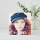 Modelo para sua própria foto. Na frente: Sobreposição de texto branco: Olá 18! O texto é escrito com um moderno estilo escrito à mão. Fundo: fundo branco e letras cor púrpura escuras. Modelos para um nome e detalhes da festa.