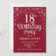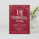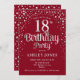 18º Convite de aniversário. Design elegante em vermelho e prata brilhante fraca. Possui fonte de script na moda e confetti. Envie-me uma mensagem se precisar de idade personalizada.