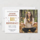 18ª Cartão de Convite Fotográfico de Festa de aniversário. Reúna amigos e familiares para comemorar alguém especial no seu aniversário com este 18º CONVITE FOTOGRAFAR para FESTA DE ANIVERSÁRIO projetado com a sua imagem favorita, juntamente com detalhes de eventos em texto vermelho e dourado. O verso é decorado em estrelas vermelhas brilhantes em um fundo branco, junto com o nome da pessoa e seus detalhes de contato RSVP. Para personalizar, simplesmente insira sua imagem no nosso modelo; clique em "AJUSTADO" e vá para a borda direita. Em seguida, insira seu detalhe de informações no modelo, substituindo o texto de exemplo. Nota: Este 18º Convite de festas de Foto de Aniversário está disponível no impressão e no download.