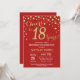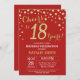 18º Convite de Aniversário com Fundo de Diamante Vermelho e Dourado. Dourado Confetti. Aniversário Adulto. Homens ou Mulheres Aniversário.