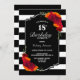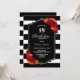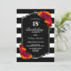 Convite de festas de janto de aniversário de 18 anos, em branco e preto, com elegantes monitores florais vermelhos e laranja. O texto é totalmente personalizável para permitir que você inclua todas as suas próprias informações para a celebração de aniversário.