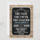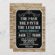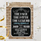 Um convite ousado de 18 anos com texto branco e azul sobre um fundo preto cercado de madeira. Por favor, anote as palavras "O Homem, O Mito, A Lenda" e todas as linhas ornamentais NÃO são editáveis.