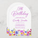Uma bonito fronteira de flores silvestres decora o fundo deste convite para o aniversário de 18 anos adulto. Flores roxas, azuis, amarelas e alaranjadas criam um design colorido e feliz para celebrar esse aniversário marco. A caligrafia roxa moderna e simples acrescenta um toque de tendência para mantê-la fresca. O fluxo de letras aberto e livre de atalhos se coordena perfeitamente com as margaridas e as botas. Este convite de 18 anos vai dar o tom perfeito, quando seus convidados o receberem. Escolha encantadora para primavera ou festa de aniversário de verão. Este elemento faz parte da Coleção de Flores Roxas Bonito. Use-o para criar facilmente a suíte perfeita de convites de 18 anos e o tema da festa.