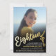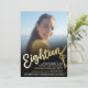Dezoito textos de script em cor dourada com 18 teclas na porta e um grande convite de aniversário fotográfico. Personalize este convite para a 18ª festa de aniversário com os seus próprios detalhes de aniversário e fotografia. Outros anos e itens correspondentes estão disponíveis e podem ser criados por solicitação. Este é o efeito ouro e o convite preto também está disponível como download digital. Uma versão real de folha de ouro também está disponível na minha loja. © Original design por Sarah Trett para www.mylittleeden.com no Zazzle.