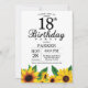 18.º Aniversário do Girassol. Flores Florais e Fundo Branco. Retro De Vintagem Do País. Aniversário das mulheres. 15 12 13 16º 18º 20 21rua 30 40º 50º 60º 70 90 100º, qualquer idade. Digital Imprimível. Para mais personalização, clique no botão "Personalizar" e use a ferramenta design para modificar este modelo.