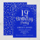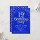 19º Convite de aniversário. Design elegante em azul real e prata brilhante falso. Possui fonte de script na moda e confetti. Envie-me uma mensagem se precisar de idade personalizada.