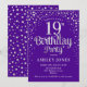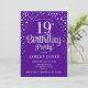 19º Convite de aniversário. Design elegante em prata brilhante roxa e falso. Possui fonte de script na moda e confetti. Envie-me uma mensagem se precisar de idade personalizada.