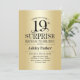 Surpresa 19º Convite à Celebração de Aniversário. Design elegante com folha de ouro falsa. Apresenta uma fonte elegante de script preto. Envie-me uma mensagem se precisar de mais personalização.