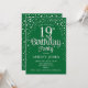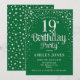 19º Convite de aniversário. Design elegante na floresta verde esmeralda e prata brilhante falso. Possui fonte de script na moda e confetti. Envie-me uma mensagem se precisar de idade personalizada.