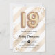 19º convite de aniversário. Design elegante em ouro brilhante com listras brancas. Convide cartão com balões dourados número 19, fonte de script com confetti. Perfeito para uma comemoração de na moda 19 dias. Envie-me uma mensagem se precisar de idade personalizada.
