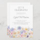 Um elegante arranjo floral de aquarela de flores de safra enfeita a borda inferior deste 19º convite de aniversário. As flores macias pastel são acentuadas pela arte moderna da linha.