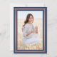 Quer amigos e familiares estejam praticando distanciamento social ou simplesmente vivam longe, conectem-se com eles online com uma festa de formatura virtual na moda. (DICA DE IMAGEM: Uma maneira fácil de centralizar uma foto exatamente como você deseja é recortá-la antes de carregá-la no site do Zazzle.) Este marinho moderno, azul, rosa e branco, permite compartilhar uma foto e convidar convidados para um evento de longa distância por meio de videoconferência com zoom, streaming ao vivo na Internet ou um jogo de vídeo de realidade virtual. Todo texto também é simples de personalizar para uma parada de carro de graduação de drive-by ou drive-through. Se apenas um cartão de anúncio for preferido, basta mudar o texto para incluir qualquer detalhe de sua escolha, como nomes de pais, honras especiais, título de grau, planos futuros de formando e informações de contato, ou citação de inspiração favorita. O Modelo também pode incluir uma mensagem pessoal se este for um evento reagendado devido a um cancelamento ou adiamento. Se houver algum texto não desejado, simplesmente exclua-o. Design apresenta um fundo azul marinho, folha metálica falsa rosa dourada, tipografia branca na moda moderna, caligrafia com script manuscrito e uma foto de sua escolha, como uma fotografia de mais velho ou imagem da cerimônia inicial. Observe que o rosa dourado é impresso a cor, não a folha real. Esta carta elegante é uma maneira chique de começar sua celebração especial. Parabéns ao formando!