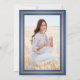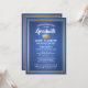 Compartilhe a alegria de um segundo grau ou formandos e convide a família e os amigos a celebrarem com elegantes convites personalizados de fotos azuis reais e falsos feitos em folha de ouro. Este modelo é configurado como um convite de festas e anúncio de graduação combinados, e é simples de personalizar com qualquer texto de sua escolha, como nomes de pais, honras de formandos ou prêmios, grau, citação inspiracional favorita ou planos futuros e informações de contato. A design apresenta um fundo metálico piscado, elegante borda listrada, caligrafia na moda moderna, tipografia vintage clássica e uma foto favorita, como uma fotografia de mais velho ou uma imagem da cerimônia de início. Por favor, note que o ouro é impresso a cor verde e não a folha metálica. Estes cartões de na moda são uma maneira elegante de compartilhar uma celebração especial de dia com a família e os amigos. Parabéns ao formando!
