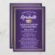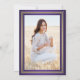 Quer amigos e familiares estejam praticando distanciamento social ou simplesmente vivam longe, conectem-se com eles online com uma festa de formatura virtual na moda. (DICA DE IMAGEM: Uma maneira fácil de centralizar uma foto exatamente como você deseja é recortá-la antes de carregá-la no site do Zazzle.) Esse convite roxo, ouro e branco moderno permite compartilhar uma foto e convidar convidados para um evento a longa distância por meio de videoconferência com zoom, streaming ao vivo da Internet ou um jogo de realidade virtual. Todo texto também é simples de personalizar para uma parada de carro de graduação de drive-by ou drive-through. Se apenas um cartão de anúncio for preferido, basta mudar o texto para incluir qualquer detalhe de sua escolha, como nomes de pais, honras especiais, título de grau, planos futuros de formando e informações de contato, ou citação de inspiração favorita. O Modelo também pode incluir uma mensagem pessoal se este for um evento reagendado devido a um cancelamento ou adiamento. Se houver algum texto não desejado, simplesmente exclua-o. Design apresenta um fundo roxo, folha metálica falsa, tipografia branca na moda moderna, caligrafia com script manuscrito e uma foto de sua escolha, como uma fotografia ou imagem de mais velho da cerimônia de inicio. Por favor, note que o ouro é impresso a cor, não a folha real. Esta carta elegante é uma maneira chique de começar sua celebração especial. Parabéns ao formando!
