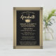 Compartilhe a alegria de um segundo grau ou formandos e convide a família e os amigos a celebrarem com elegantes convites personalizados para fotos em preto e falso em folha de ouro. Este modelo é configurado como um convite de festas e anúncio de graduação combinados, e é simples de personalizar com qualquer texto de sua escolha, como nomes de pais, honras de formandos ou prêmios, grau, citação inspiracional favorita ou planos futuros e informações de contato. O design apresenta uma elegante fronteira listrada, caligrafia na moda moderna, tipografia clássica de vintage e uma foto favorita, como uma fotografia de mais velho ou uma imagem da cerimônia de inauguração. Por favor, note que o ouro é impresso a cor verde e não a folha metálica. Estes cartões de na moda são uma maneira elegante de compartilhar uma celebração especial de dia com a família e os amigos. Parabéns ao formando!