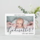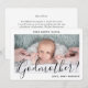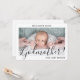 Uma maneira atenciosa de pedir a um membro da família ou amigo para ser padrinho de seu filho é dar a ela um cartão de proposta fotográfica personalizado e elegante que ela pode guardar como lembrança. Todas as imagens e textos são fáceis de personalizar, incluindo a citação na frente que diz "Você quer ser minha Madrinha?". Se preferir escrever à mão sua mensagem no verso, basta excluir o exemplo de texto de nota de agradecimento. (DICA DE COLOCAÇÃO DE IMAGEM: Uma maneira fácil de centralizar uma foto exatamente como você quer é cortá-la antes de fazer o upload para o site da Zazzle.) Este modelo de convite de proposta personalizado apresenta tipografia minimalista moderna, caligrafia em estilo manuscrito e uma foto de sua escolha. O design neutro em preto e branco é adequado para madrinhas, padrinhos, menino ou menina. É uma maneira única e elegante de propor aos padrinhos antes de um batismo, batizado ou
