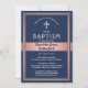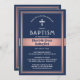 Convite 1 Marinho de Batismo Azul e Rosa Rosa Dourada
