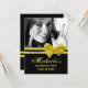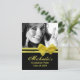 Este convite para a graduação em fundo sóbrio permite que você substitua a foto pela sua e altere o texto para sua preferência e conveniência. O arco amarelo é mostrado, mas outras cores estão disponíveis. Reciclado, mas você pode escolher outros tipos de papel.