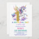 Convite 1rua Arco-Íris Unicórnio Voos de Aniversário